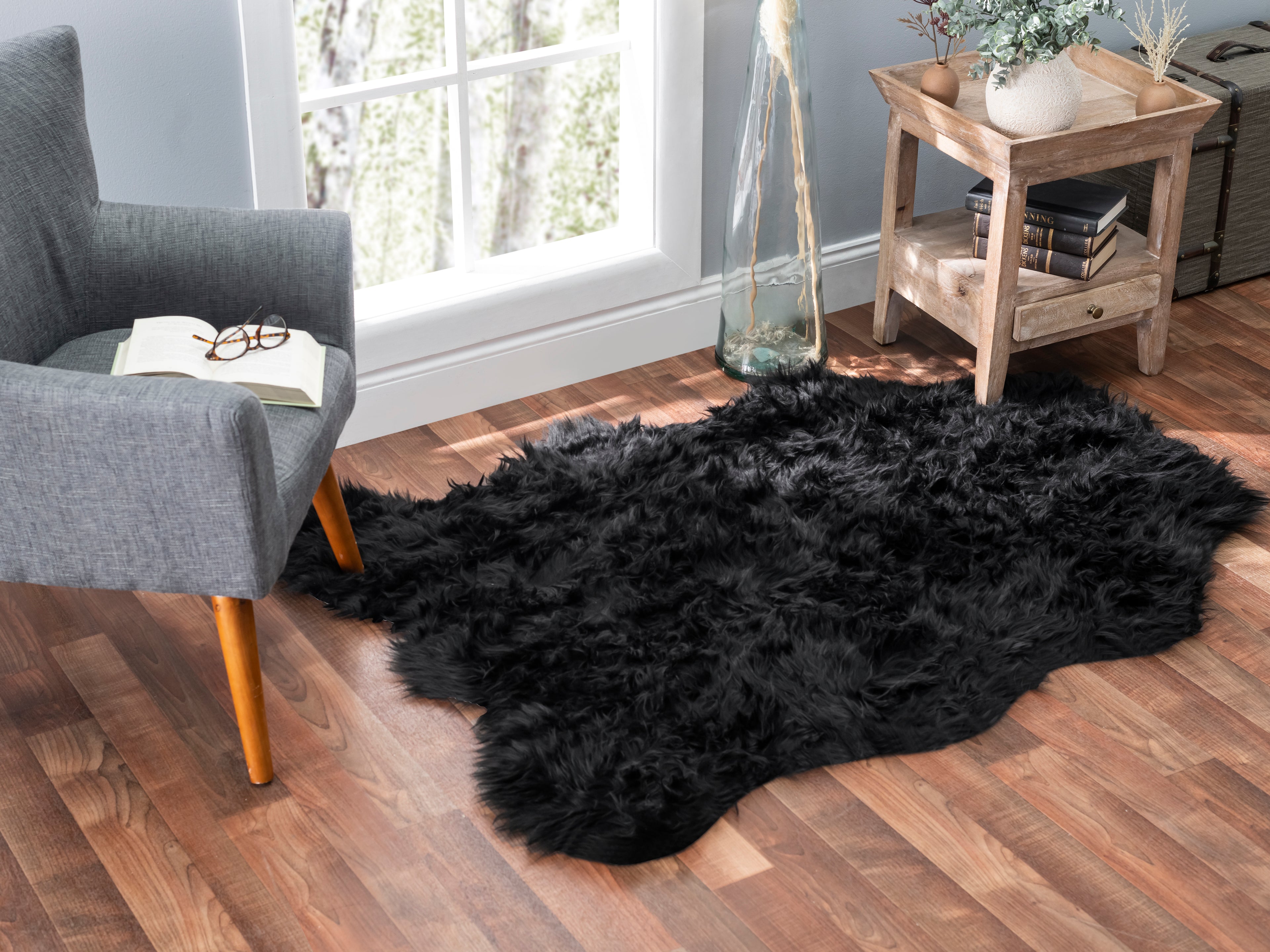Our faux fur rug is washable, hypoallergenic, fire retardant without the use of chemical additives
